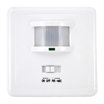 Датчик движения белого цвета мощностью 500 Ватт с дальностью обнаружения 12 метров и углом обзора 140°