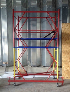 Вышка тура, строительная, малярная, размер настила 1,6мх0,7м, высота 2,7м, стальная, на колесах.