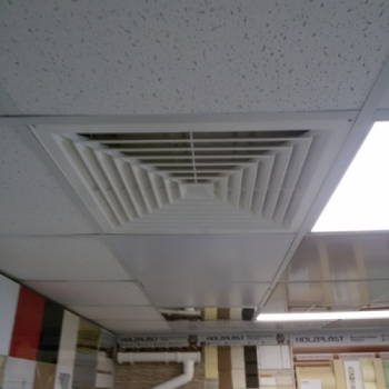 Монтируются диффузорные решетки в потолок так же, как и декоративные плиты. Размер решётки - 595х595мм. Установка не предусматривает наличия креплений.