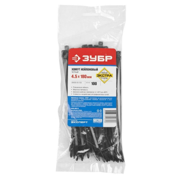 Хомуты ЗУБР нейлоновые черные 4,5x180мм, 100шт