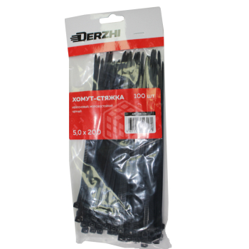 Хомут-стяжка Derzhi КСС, 5х200 мм, нейлоновые, черные, 100 шт