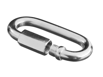 Карабин винтовой с муфтой, оцинкованный, 5мм, 35 шт, ЗУБР 4-304535-05 Требуемый размер карабина определяется по диаметру поперечного сечения проволоки Для надежной фиксации цепей или тросов прижимная муфта в карабине должна быть полностью закручена Цинковое покрытие защищает от коррозии и продлевает срок службы изделия Применяется для надежного и быстрого соединения цепей и тросов между собой, а также для крепления их к различным конструкциям. Не используются для подъема грузов и особо ответственных работ. Техническая таблица. Такелажный крепеж Листовка. Такелажный крепеж 304xx-xx