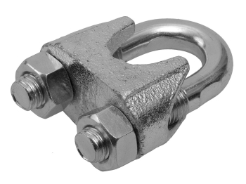 Зажим троса DIN 741, оцинкованный, 6мм, 80 шт, ЗУБРПрофессионал4-304415-06. Используется на тросах без оплетки ПВХ (если трос имеет оплетку, ее необходимо снять перед установкой зажима). Свободный конец троса рекомендуется обмотать изолентой для предотвращения разматывания троса после установки. Перед использованием необходимо убедиться, что гайки на зажимах закручены полностью. Цинковое покрытие защищает от коррозии и продлевает срок службы изделия. Применяется для формирования петель на концах троса.Свободный конец троса закладывается в зажим (конец троса должен выходить из зажима на расстояние не менее 1/2"диаметра троса). Далее в петлю троса закладывается коуш, после которого трос помещается в зажим с другой стороны отверстия. Сверху помещается прижимная скоба, которую небходимо крепко зафиксировать с помощью гаек. Скоба обязательно помещается сверху на "свободный" конец троса. Рекомендуемое расстояние между зажимами равно шестикратному диаметру троса.