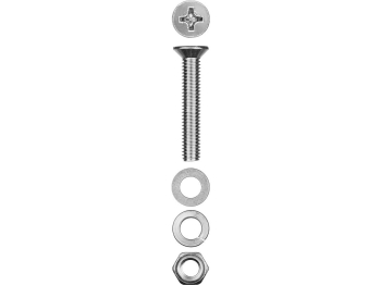 Винт (DIN965) в комплекте с гайкой (DIN934), шайбой (DIN125), шайбой пруж. (DIN127), M5 x 40 мм, 12 шт, ЗУБР. * Набор состоит из болтов с шестигранной головкой DIN 965, гаек шестигранных DIN 934, гроверных шайб DIN 127 и плоских шайб DIN 125 * Потайная головка винта позволяет осуществить крепление заподлицо в мягком материале * Класс прочности 8.8 придает конструкции повышенную прочность * Гроверные шайбы предотвращают раскручиваение соединения. Плоские шайбы предназначены для увеличения площади соединения и распределения давления на опорную поверхность * Цинковое покрытие надежно защищает от коррозии и продлевает срок службы изделий Применяется для резьбового соединения деталей и конструкций в строительстве и машиностроении. Листовка. Метрический крепеж 303xx-xx-xx