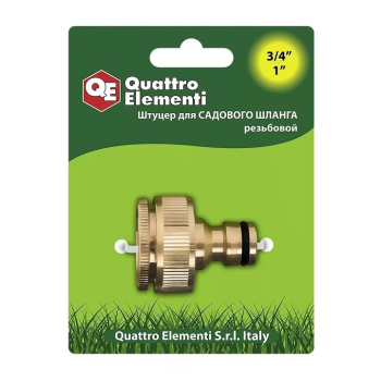 Штуцер для шланга QUATTRO ELEMENTI внутр. резьба 3/4" и 1" - БРС папа, латунь (246-364).