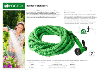 РОСТОК Р-22, длина 7.5 - 22.5 м, пистолет поливочный, коннекторы, удлиняющийся шланг (428498-22) (Растягивающиеся). Санкт-Петербург