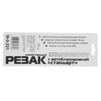 Описание: Служит для разных задач в слесарно-монтажных и других работах. Инструментом разрезают ткани, бумагу, картон, провода и более плотные материалы: пластик, дерево, гипсокартон, толстые кабели — все зависит от типа ножа. В домашнем ремонте инструмент используется, чтобы разрезать обои или напольные покрытия. Технический нож пригодится для очистки проводов от изоляции. Наличие металлической направляющей поддерживает сохранность корпуса и дает возможность использовать нож для плотных и слоистых материалов. Сегментированные отламывающиеся лезвия выполнены из углеродистой стали 60Г. Промежуточная фиксация лезвия может осуществляться автофиксатором. Корпус из ABS-пластика.. Сегментированное лезвие 18 х 100 мм, толщина 0,5 мм, 3 запасных лезвия.