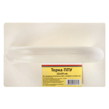 Терка ППУ стандартная 120х190 мм обладает грубой рабочей поверхностью, что позволяет равномерно наносить раствор на стену. Изделие изготовлено из пенополиуретана, имеет удобную ручку для работы. Также терку можно использовать при затирке и шлифовании отштукатуренных поверхностей.