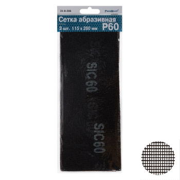 Сетка шлифовальная абразивная Р60, 105 х 280 мм, 3шт, Ремоколор. Тольятти