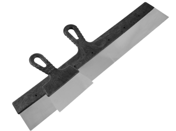 Шпатель фасадный — это нужный инструмент для проведения наружных (фасадных) отделочных работ; при необходимости, может использоваться и для внутренних. В основном применяется для шпаклевки или штукатурки стен и потолков. Ширина рабочей поверхности оптимальна — 450 мм, что позволяет смело использовать инструмент при работе даже с очень большими площадями. Лезвие изготовлено из нержавеющей стали, а ручка — из полипропилена.