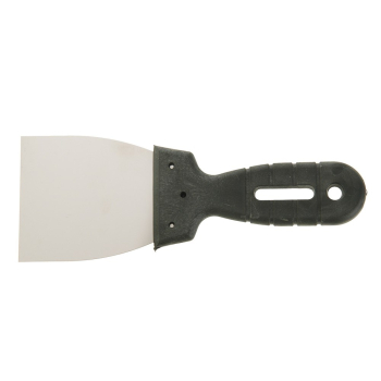 Шпательная лопатка из нержавеющей стали используется в ходе строительных и ремонтных работ. Лопатка предназначена для того, чтобы наносить на обрабатываемые поверхности слой шпатлевки, а также для последующего разравнивания и сглаживания выступающих над поверхностью неровностей. Шпатель выполнен из нержавейки и снабжен удобной рукояткой из пластика.