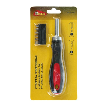 Описание: Реверсивная отвертка с набором бит, 6 предметов, PH 1, 2, 3, SL 3, 5, 7 предназначена для монтажа и демонтажа резьбовых соединений.