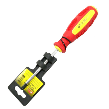 Описание: Ударная отвертка позволяет справиться со снятием застарелых, прикипевших или заржавевших резьбовых соединений. Ее рабочая часть изготовлена из хромованадиевой стали, благодаря чему обладает прочностью и долговечностью. Наконечник отвертки намагничен, что облегчает работу с мелкими крепежными элементами. Двухкомпонентная рукоятка оснащена стальным затыльником, позволяющим наносить удары киянкой или молотком.