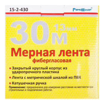Мерная лента фиберглассовая 30 м / 13 мм, РемоКолор. Тольятти