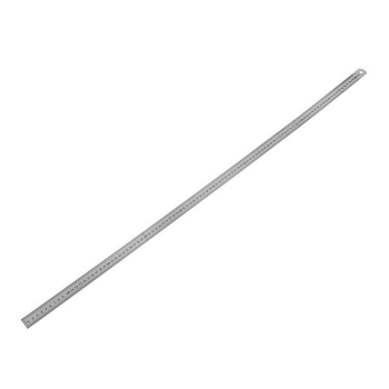 Описание: Изготовлена из нержавеющей стали. Измерительная шкала нанесена с двух сторон полотна (сверху и снизу). Имеет отверстие, позволяющее хранить линейку в подвешенном состоянии.