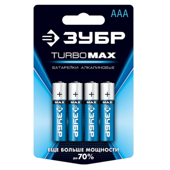 ЗУБР TURBO-MAX, ААА х 4, 1.5 В, алкалиновая батарейка (59203-4C) (Элементы питания). Санкт-Петербург