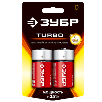 ЗУБР TURBO, D х 2, 1.5 В, алкалиновая батарейка (59217-2C) (Элементы питания). Санкт-Петербург