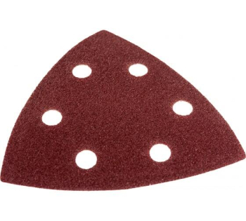 Насадка для МФИ ПРАКТИКА шлиф.листы, дельта, VELCRO, 6 отверстий 93 мм, P120, 10 шт. (240-454) Листы шлифовальные абразивные предназначены для обработки дерева, металла, удаления лакокрасочных покрытий и ржавчины с помощью многофункционального инструмента (МФИ) или дельтавидной шлифмашины. Устанавливаются на дельтавидную шлифовальную подошву с отверстиями, предназначенными для пылеудаления.Дельтавидная форма наиболее удобна для выполнения таких работ как: работа в углах и на небольших участках поверхности; шлифовка при реставрации фасадов мебели, изготовленных из массива древесины, плинтусов, наличников, оконных рам, различных мелких деталей, локальное удаление ржавчины с кузовов автомобилей.Листы изготовлены из оксида алюминия на тканевой самоклеящейся основе Velcro.Длина стороны листа 93 мм