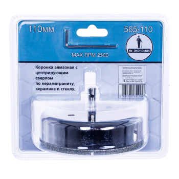 Коронка алмазная с центр. сверлом по керамограниту и керамике Mr. ЭКОНОМИК 110мм, 565-110. Москва