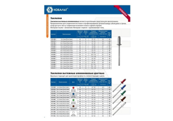Заклепки вытяжные КОБАЛЬТ алюминиевые, 4,8 х 18 мм (50 шт.) пакет. Заклепки вытяжные алюминиевые КОБАЛЬТ применяются для скрепления между собой листовых материалов. Устанавливаются в отверстие, после чего расклепываются со стороны стержня, образуя прочное неразъемное соединение.