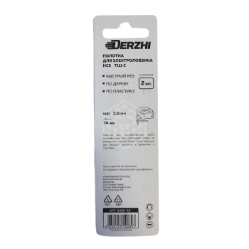 Полотно пильное для лобзика Derzhi T111C, по дереву, 2 шт