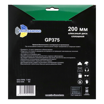 Диск алмазный отрезной 200*25,4 TRIO-DIAMOND Сплошной Гранит Premium, GP375. Москва