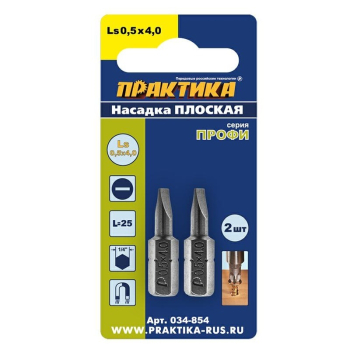 Бита отверточная ПРАКТИКА Профи SL-0,5х4,0мм 25мм (2 шт), (034-854) (Биты | Насадки отверточные). Санкт-Петербург
