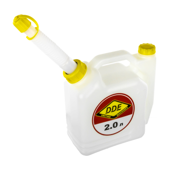 Канистра DDE для топливной смеси 2,0 л. с дозатором 247-019 предназначена для смешивания масла с бензином. Пользоваться данной канистрой очень удобно, так как она имеет дозатор, в который заливается необходимое количество масла. В саму канистру заливается бензин и все тщательно перемешивается. Наконечник для заливки топливной смеси поставляется в комплекте.