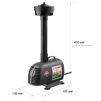 Насос ЗУБР фонтанный, для чистой воды, напор 4,2м, насадки: колокольчик, гейзер, водопад, 120Вт, 60л/мин/ Простое средство для украшения сада. Обычный пруд с установкой насоса превращается в фонтан, причем, благодаря сменным насадкам, форма струи легко меняется между гейзером, каскадом и колокольчиком, а также может переключаться на водопад. Таким образом, одно изделие способно изменить Ваш пруд или сад, привнеся в него веселое и успокаивающее журчание воды, под которое так приятно отдыхать после рабочей недели Преимущества Четыре формы фонтанной струи-гейзер, колокольчик, большой и малый каскад Плавная регулировка струи колокольчик и легкая смена типа фонтана Для чистой воды Возможность организавать водопад Удлинительная трубка в комплекте Крепление к плиточному или пластиковому дну водоема Губчатый фильтр для защиты насоса от попадания частиц грязи Соединительный штуцер 1/2"