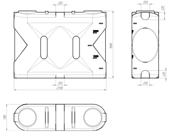 Вертикальная емкость танк с двумя горловинами объемом 3000л. Благодаря особой форме емкость проходит в дверной проем уже построенного дома, используется для стационарного хранения питьевой воды, пищевых продуктов, нефтепродуктов и химических веществ.