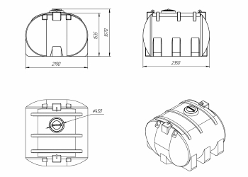 Горизонтальная емкость 6000л имеет резьбовую крышку с дыхательным клапаном, который обеспечивает абсолютную герметичность и сохранность находящихся в ней грузов.