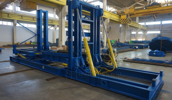 Кантование выполняется на 180 градусов с промежуточным шагом 90 градусов, одна из переворотных кареток является подвижной и в горизонтальном положении, что позволяет осуществлять подгонку по высоте железобетонного изделия. Железобетонное изделие надежно фиксируется специальными боковыми ограничительными элементами.
