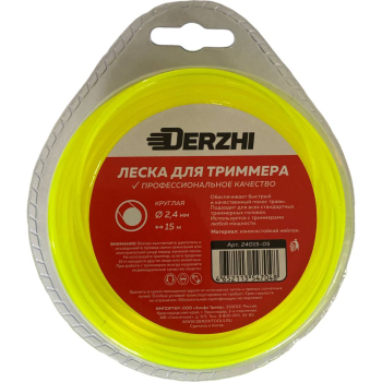 Леска для триммеров Derzhi, круглая, 2,4 мм, 15 м, блистер