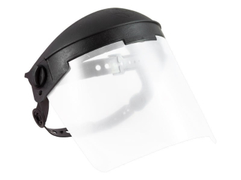 Описание: Щиток защитный используется для защиты лица и глаз от воздействия твердых частиц и неразьедающих жидкостей. Состоит из наголовного крепления и ударостойкого прозрачного корпуса.Материал: органическое стекло.
