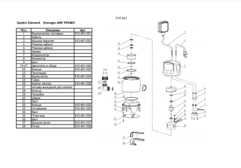 Устанавливать дренажный насос QUATTRO ELEMENTI Drenaggio 400 F Promo требуется на специально обустроенном основании, которое не будет завалено мусором и песком. Данное оборудование подключается к обычной сетевой розетке, напряжением в 220 Вольт. Как и другая подобная техника, дренажный насос QUATTRO ELEMENTI Drenaggio 400 F Promo плохо переживает перепады напряжения.