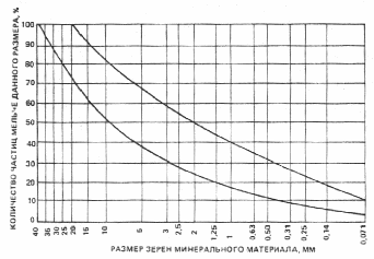 5.35. Зерновой состав плотных эмульсионно-минеральных смесей подбирают в соответствии с кривыми зернового состава (рис. 6).