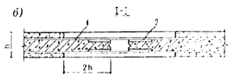 6.9. Для повышения трещиностойкости самонапряженного стыка по контакту бетона стыка и сборных элементов и использования на этих участках сопротивления бетона растяжению целесообразно выполнять торцевые участки элементов переменной толщины (см. черт. 2), при этом длина участков должна превышать их толщину не менее чем в 2 раза.