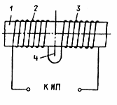 Рис. 15.2. Двухсекционный индуктор: 1 - труба; 2, 3 - секции индуктора;