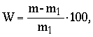 Содержание влаги в пробе бетона (W) в % вычисляют по формуле