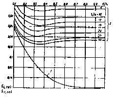 1) 0,1; 2) 0,15; 3) 0,2; 4) 0,3; 5) 0,5; 6) 1; 7) 5 и l /h = 8-15 - штриховые линии