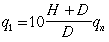 расстояние, м, между устьем одного источника и приемным устройством для наружного воздуха по горизонтали: при l < 10 D следует принимать l = 10 D; при l > 60 D l = 60 D . |