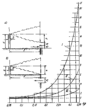 кривая для определения К , если источник находится в зоне аэродинамической тени, а приемное устройство — вне тени;