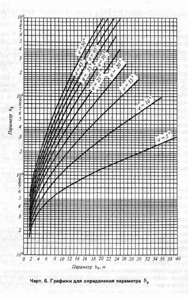 Параметр b 0 находим по черт. 6 в зависимости от параметра hk , определяемого по формуле