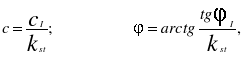 с и j — предельные значения удельного сцепления, кПа, и угла внутреннего трения, град, определяемые по формулам: