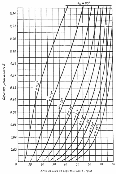 4. Требуемый угол откоса q находим по значениям j , К и Е следующим образом: