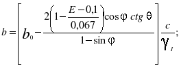 Ширину призмы обрушения откоса b , м, определяем по формулам: