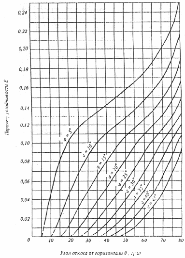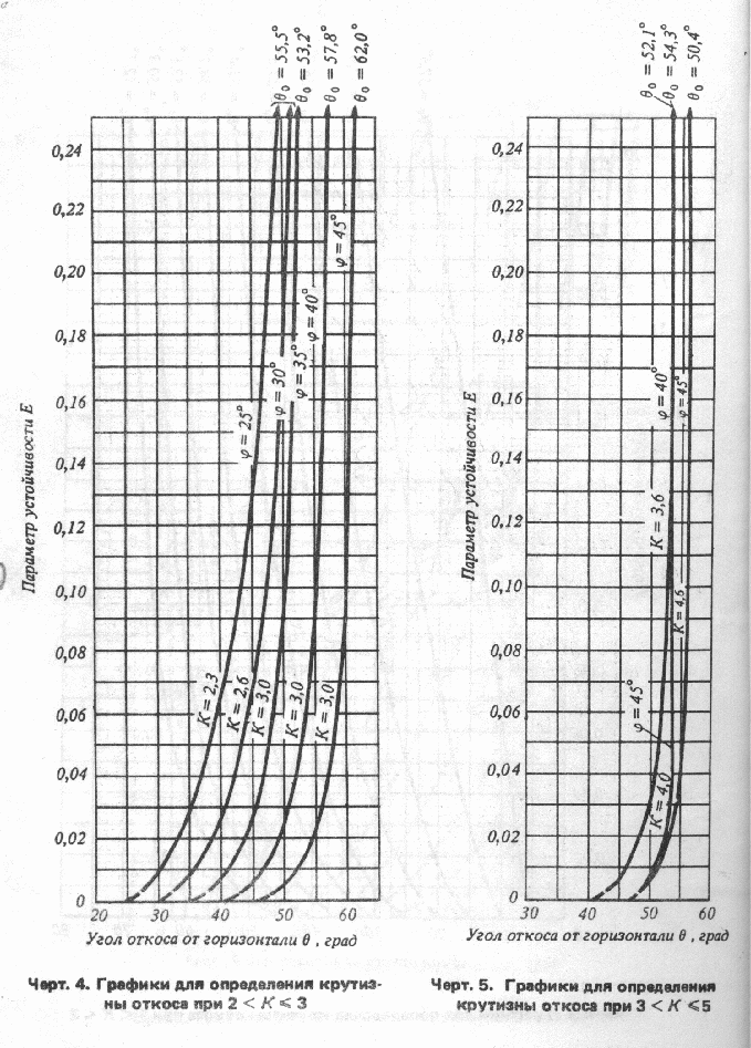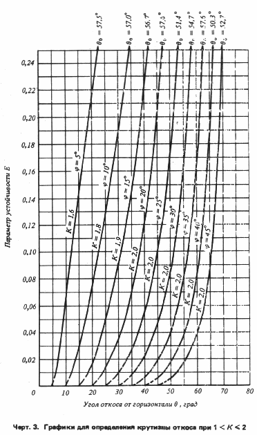 Черт. 1. Графики для определения крутизны откоса при К = 0