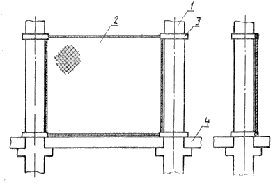 -заполнение; 2 - стойка; 3 - бортовая доска; 4 - плита перекрытия